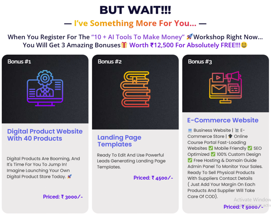 P.S. Since you’ve read this far, it’s clear you’re interested in making money & fulfilling your financial needs. And this is a golden opportunity for you to leverage AI tools like never before & use them as an asset that will make you a consistent income month after month.